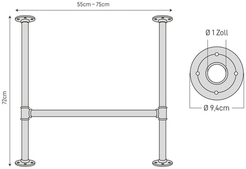 Fabricado con tubos de hierro fundido maleable de color antracita en bruto, con material de alta calidad y paredes resistentes para unagran capacidad de carga