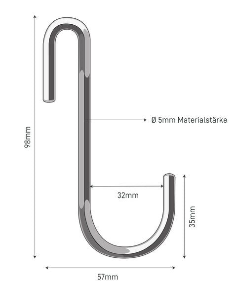 El gancho para abrigos en forma de S se adapta perfectamente a los rieles de la ropa de hasta Ø 30 mm y permite un uso flexible. El lado opuesto en forma de U estrecha es ideal para ojales, guías y lazos.