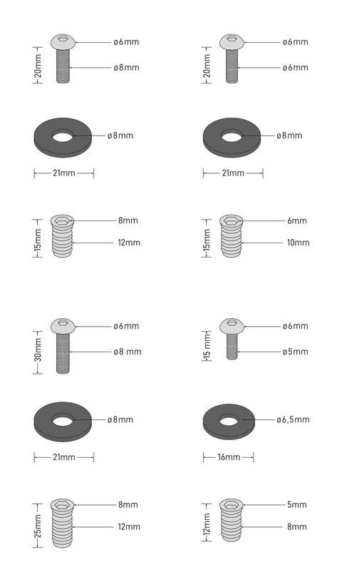 Passend zu vielen unserer Produkte findest du hier die richtigen Schrauben für eine schnelle und einfache Montage.