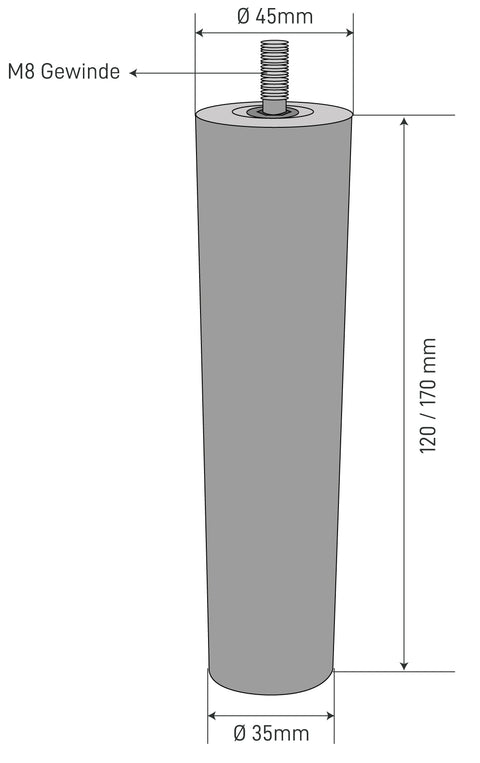 Les pieds en bois coniques (35 mm sur 45 mm) sont caractérisés par un stabilisateur élevé et conviennent donc également aux lits, au canapé ou aux placards. Par leFil M8 Pour l'assemblage, le pied s'adapte à beaucoupMeubles ikea,et avec le M8 approprié et éventuellement disponiblePlaque d'assemblage Aussi à vos autres meubles. Leplaneur en feutre fourni Assurez-vous un stand ferme et de beaux sols sensibles.