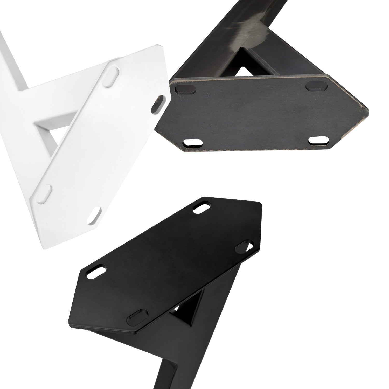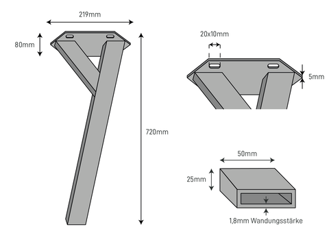 Nous proposons nos pieds de table en deux variantes - incliné avec un angle de 96° et droit avec un angle de 90, dans la hauteur 42 cm et 72 cm pour tes constructions de table individuelles.
