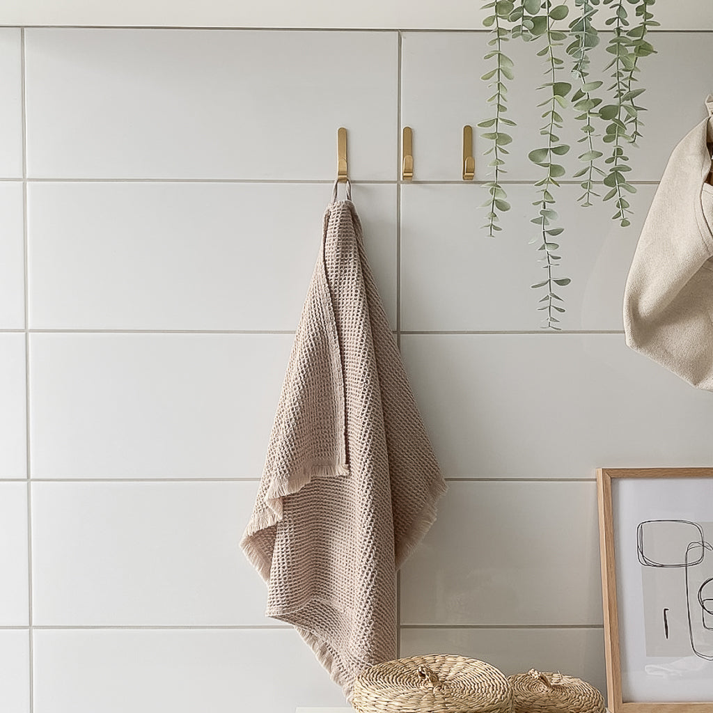 Coller au lieu de percer - Avec son design simple et intemporel brossé mat à l'aspect doré, même un crochet vide sur un mur, un carrelage, une armoire ou une porte attire l'attention.