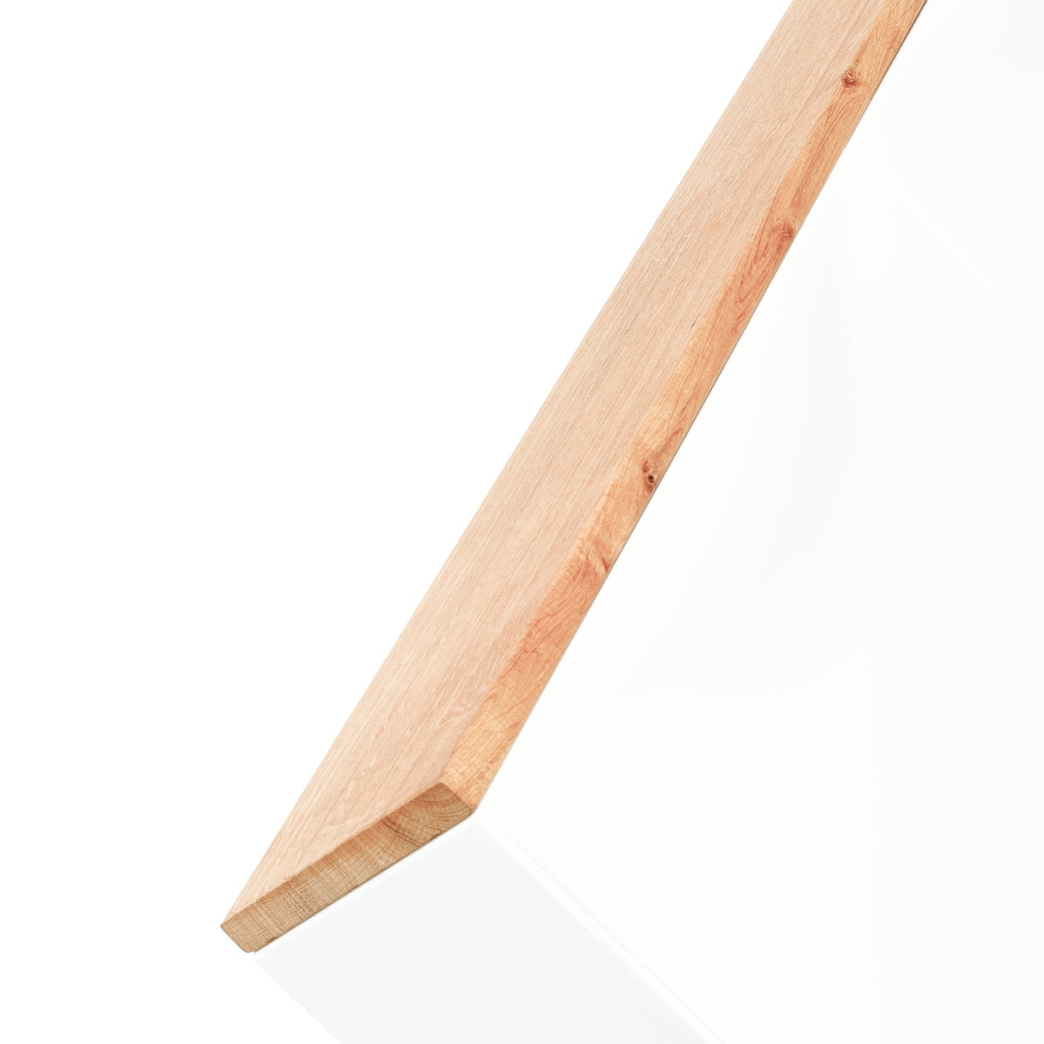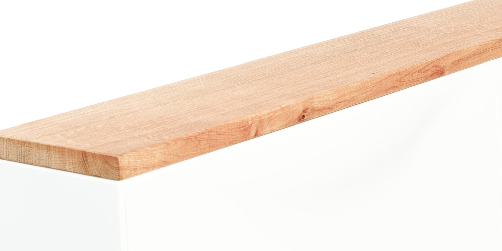 Die Deckplatten EICHE haben eine durchgehende Lamelle, sind von allen 4 Seiten gehobelt, fein geschliffen und alle Kanten gefast.