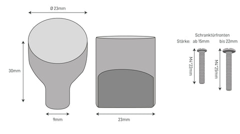Le nostre maniglie per mobili sono compatibili con tutti i frontali di armadi da 15 a 22 mm e possono essere montate in modo semplice e veloce.