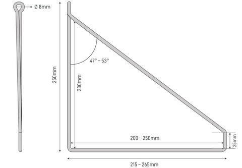 Unsere Regalhalter sind einfach zu montieren. Die seitlich offene Gestaltung sorgt für eine variable Länge des Einlegebretts, lediglich die Tiefe ist mit max. 200mm oder 250mm und die Brettstärke mit max. 25mm begrenzt.